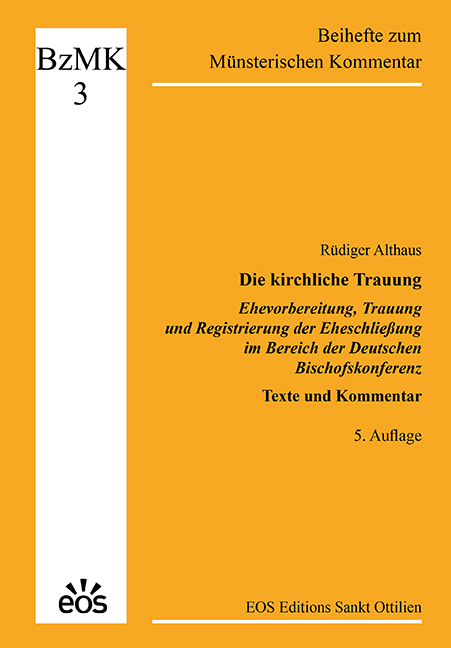 Rüdiger Althaus: Die kirchliche Trauung: Ehevorbereitung, Trauung und Registrierung der Eheschließung im Bereich der Deutschen Bischofskonferenz: Texte und Kommentar, eos Verlag 2025, ISBN: 978-3-8306-8283-7, 24,80€.