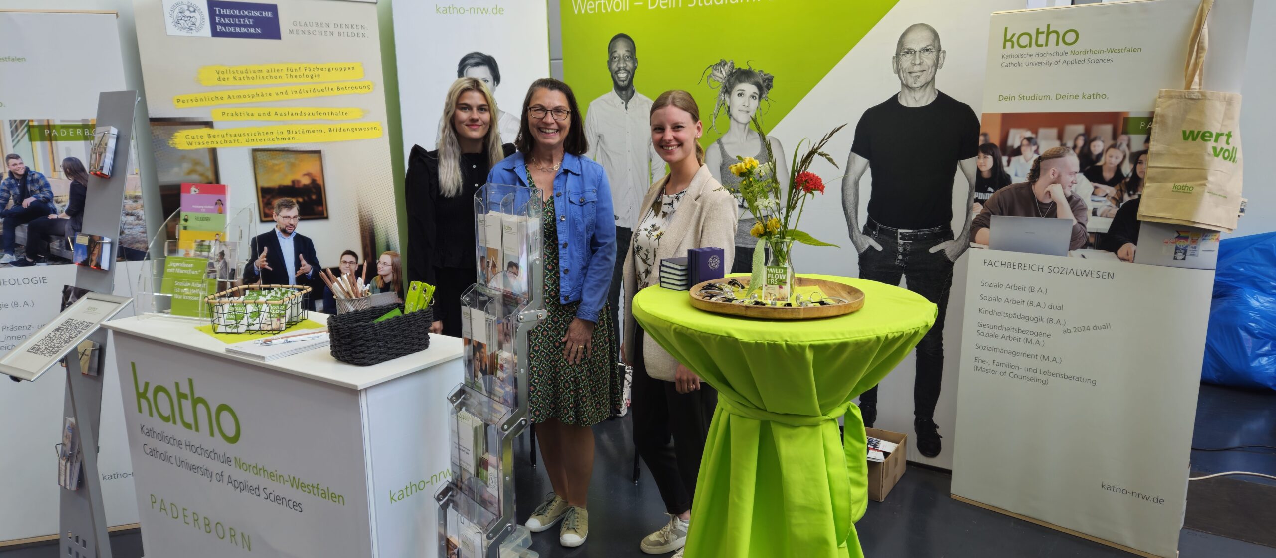 Die Fakultät hat in diesem Jahr auf der Berufs- und Studienmesse vocatium in Bielefeld gemeinsam mit der katho die Studiengänge Soziale Arbeit, Angewandte Theologie und Magister Katholische Theologie beworben. Viele interessierte Schülerinnen und Schüler kamen am Stand vorbei, um sich über die Studieninhalte, Berufsperspektiven und Zugangsvoraussetzungen zu informieren.
