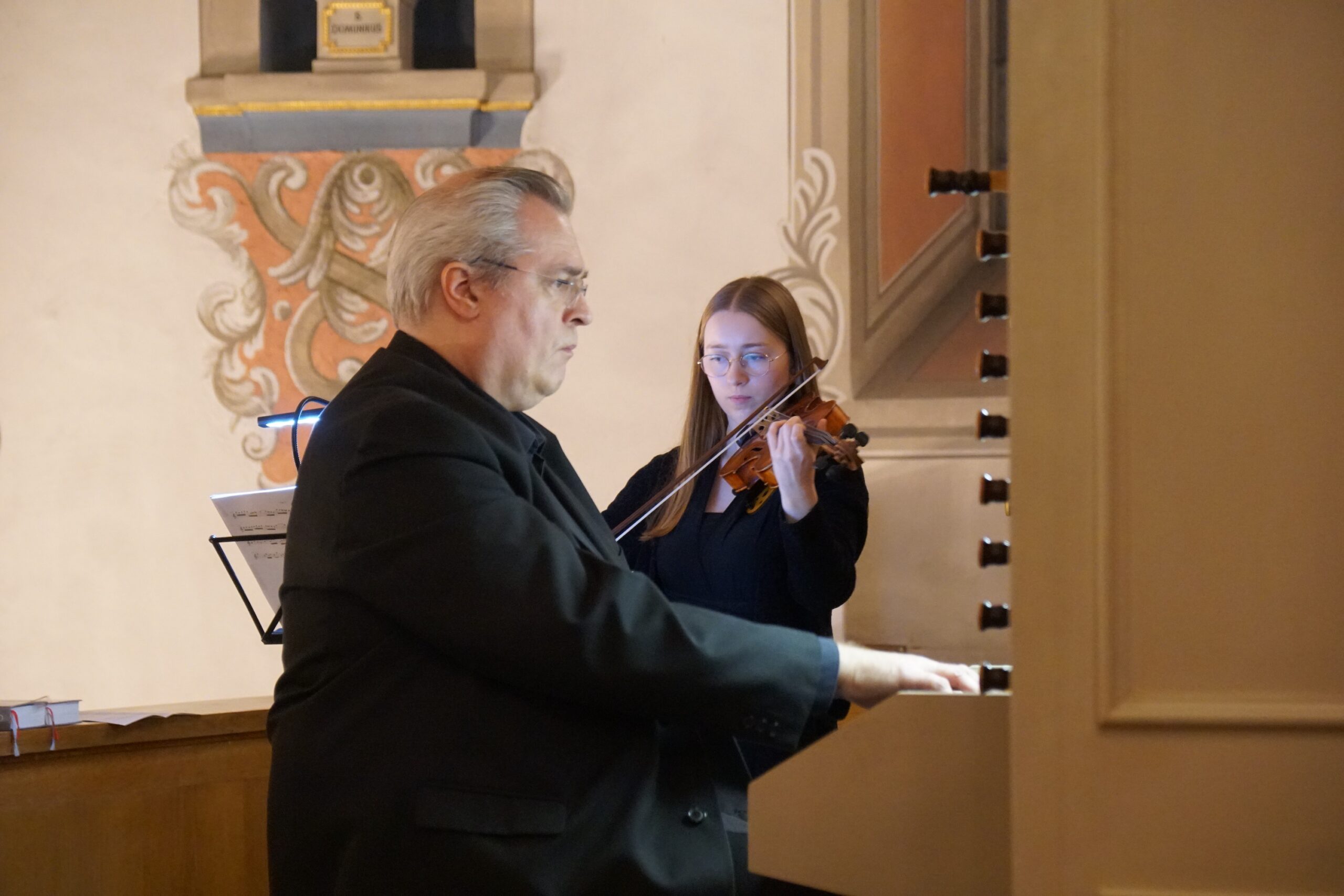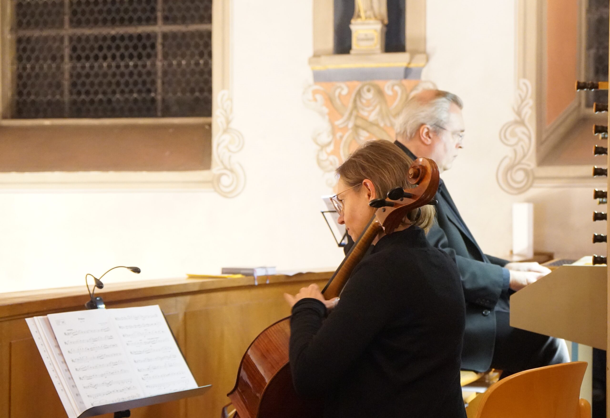 Der Himmel wird gerne mit Musik und Harmonie assoziiert. Dekanatskirchenmusiker Martin Geiselhart (Paderborn) an der Orgel, Dr. Dorothee Bauer (Wien) am Violoncello und Annika Vogler (Detmold/Paderborn) an der Violine ließen mit ihrer Musik vom Barock bis ins 20. Jahrhundert bereits im Hier und Jetzt ein Stück Himmel erahnen. Die drei Musiker*innen spielten auf der Orgelbühne der Kapuzinerkirche. So konnten das Publikum – Teilnehmende der Konferenz, aber auch die interessierte Öffentlichkeit – den Klängen intensiv und teils mit geschlossenen Augen folgen.