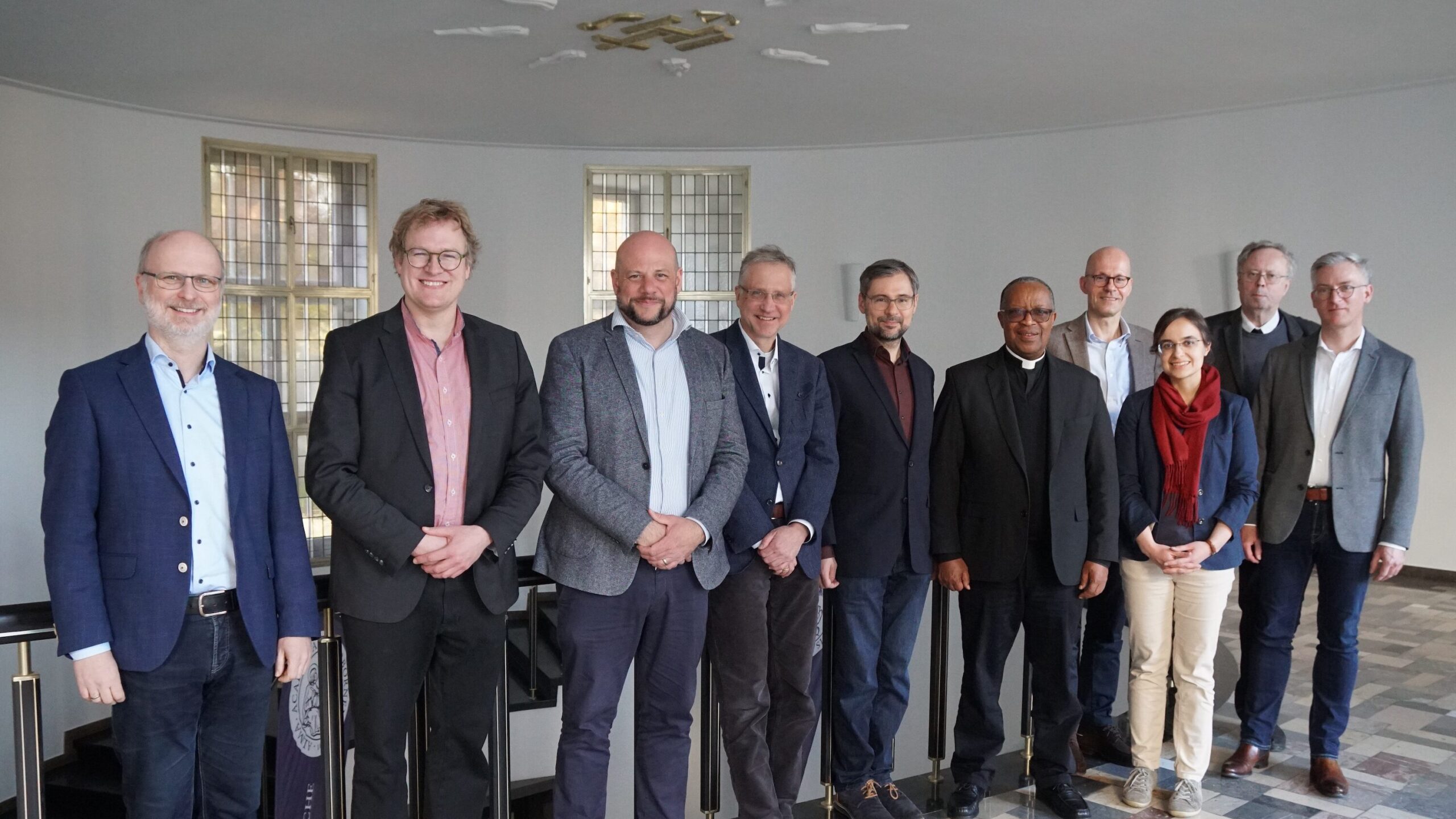So gestärkt lockte nehen Wikingerschach und Tauziehen im Rahmen der vom AStA für dieses Semester ausgelobten „Theolympiade“ eine Challenge ganz anderer Art die Anwesenden zurück in den Hörsaal. Professor Irlenborn trat gemeinsam mit Professor Lanzinger gegen Maximilian Welticke und Matthäus Freitag in einer Partie PowerPoint-Karaoke an. Und es blieb kein Auge trocken als Philosophieprofessor Irlenborn gemeinsam mit dem Neutestamentler Lanzinger mit dem ihren Disziplinen eigenen Methodenrepertoire auf den Foliensatz über die Geschichte des Fussballs losging. Während Daniel Lanzinger sorgfältig antike Abbildungen auslegte und die Wurzeln des Ein-Mann-Ballspiels herleitete dozierte Bernd Irlenborn launig über die Entwicklung der Regelwerke über die Zeit und zitierte ein philosophisches Konzept nach dem anderen, sehr zur Freude der Anwesenden. Die Messlatte lag hoch für die Kontrahenten. Maximilian Welticke und Matthäus Freitag bekamen es mit der Geschichte des Karate zu tun und jonglierten sich mit Spaß und Humor durch den Foliensatz. Belohnt wurde das Quartett nicht nur mit großem Applaus, sondern auch mit einer Medaille.