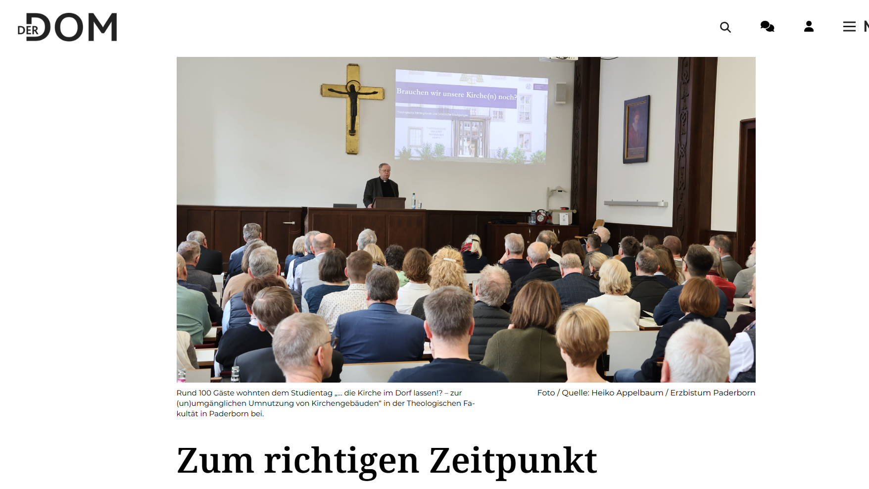 Hans-Josef Vogel (Regierungspräsident a.D.) sprach im dritten Vortrag – „Die Kirche im (digitalen) Dorf“ – über die gesellschaftlichen Aspekte. Er betonte dabei die starke Verbundenheit von Kirche und Gesellschaft, die sich vor allem in Dorfgemeinschaften und innerhalb von Stadtteilen zeigt. Die Schließung einer Kirche sei immer auch die Schließung eines öffentlichen Gebäudes. Gerade im ländlichen Raum, wo es immer seltener eigene Schulen, Banken und Einzelhandel gibt, falle eine Kirchenschließung noch einmal schwerer ins Gewicht. Kirchengebäude müssten immer auch als gesellschaftliche, öffentliche Gebäude verstanden werden. Er zeigte sich zudem besorgt darüber, wie der kirchliche Anspruch der Nähe zu den Menschen vor dem Hintergrund von Kirchenschließungen noch aufrechterhalten werden könne. Die Kirche dürfe sich nicht selbst zu einer Randerscheinung machen, sondern müsse ihre Präsenz aktiv aufrechterhalten. Hierzu brauche es neue Formate und Wege der Nähe. Mit Blick auf die Jugend machte er in diesem Zusammenhang besonders auf das Thema der Digitalisierung der Kommunikation aber auch von kirchlichen Angeboten aufmerksam.