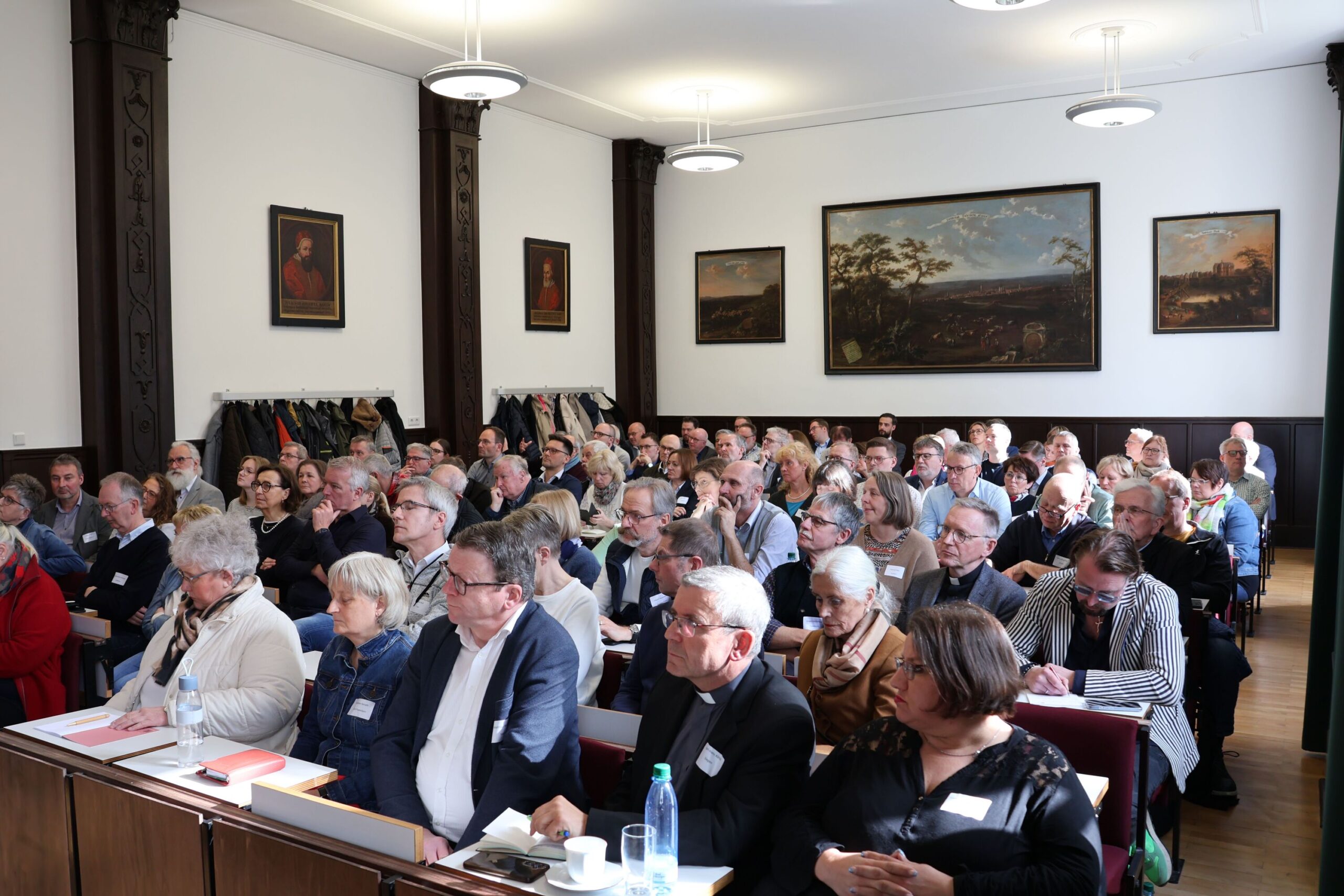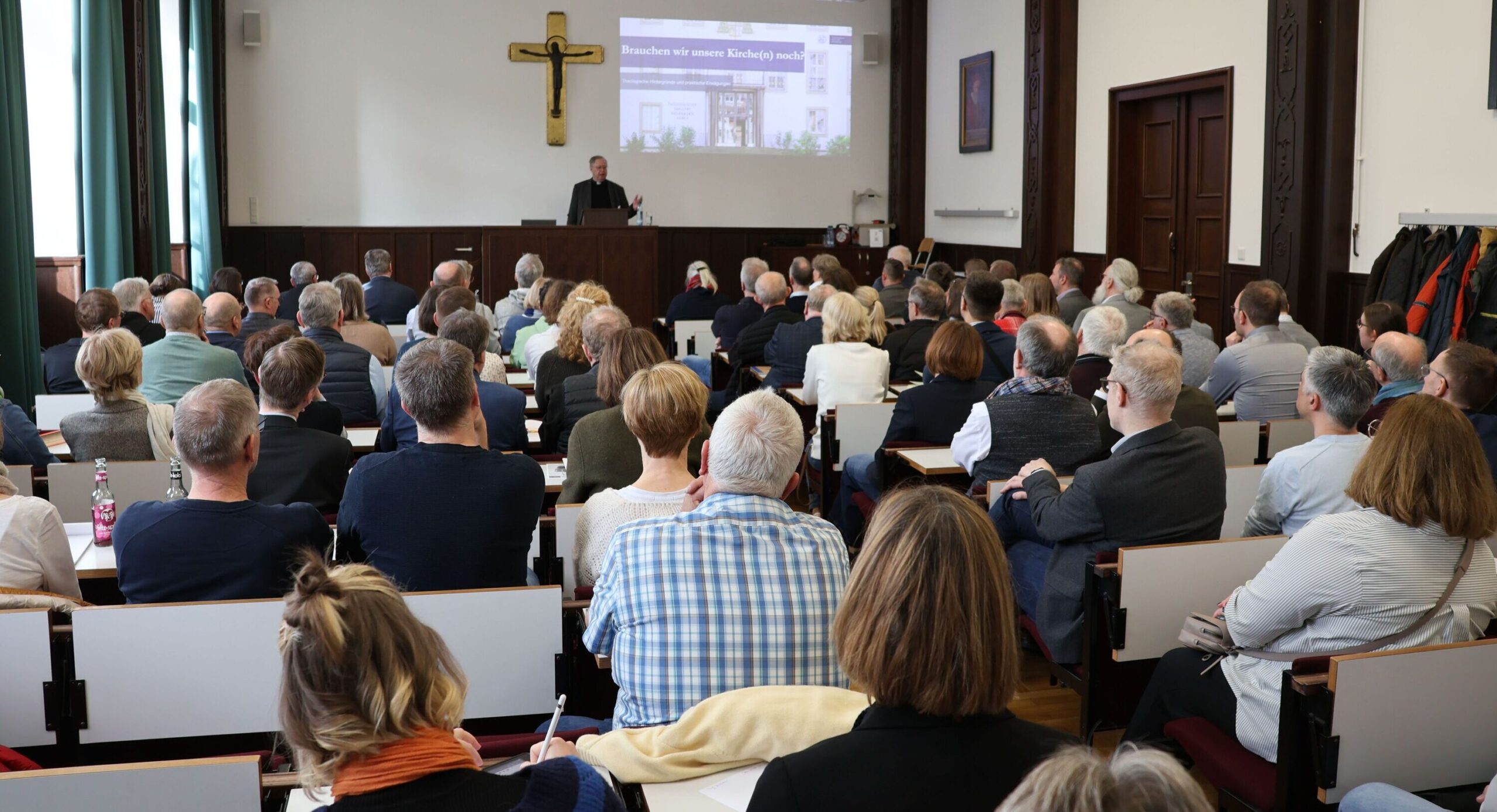 Angesichts von rückläufigen Zahlen an Gottesdienstbesuchen und knapper werdender finanzieller Ressourcen stellt sich zwangsläufig die Frage, die gleichzeitig für Diskussionen und mitunter auch für Polarisierung sorgt: Was sollen Kirchengemeinden mit ihren Kirchengebäude machen, wenn diese für die Gemeinden zu groß und die Kosten für Unterhalt und Instandhaltung, gerade aber auch umfangreiche Sanierungsmaßnahmen kaum noch aufzubringen sind? Auch das vom Erzbistum im Jahr 2025 angestoßene Projekt, die Diözese in den kommenden Jahren in großen Seelsorgeräumen neu zu organisieren, hat die Frage erneut aufgeworfen, was mit Kirchengebäuden, in denen in der neuen Struktur nur noch sehr unregelmäßig Gottesdienste (nur Messfeiern?) gefeiert werden können, passieren soll. – Unter der Verantwortung des Lehrstuhls für Kirchenrecht lud die Theologische Fakultät daher hauptamtliche Mitarbeitende aus der Pastoral sowie Ehrenamtliche der pfarrlichen Gremien zu einem Studientag ein. Ziel war es, das Thema aus theologischer, aber auch aus rechtlicher, psychologischer und gesellschaftlicher Perspektive zu betrachten und miteinander ins Gespräch zu kommen.